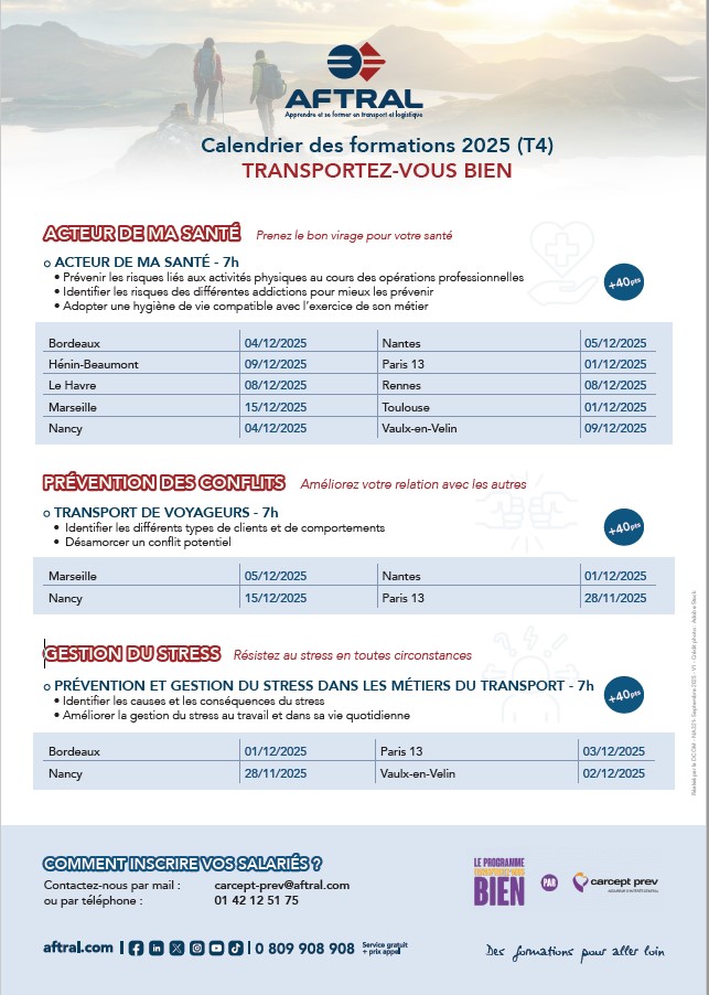 - > Formation et gestion du stress dans les métiers du transport (20 points de solidarité)