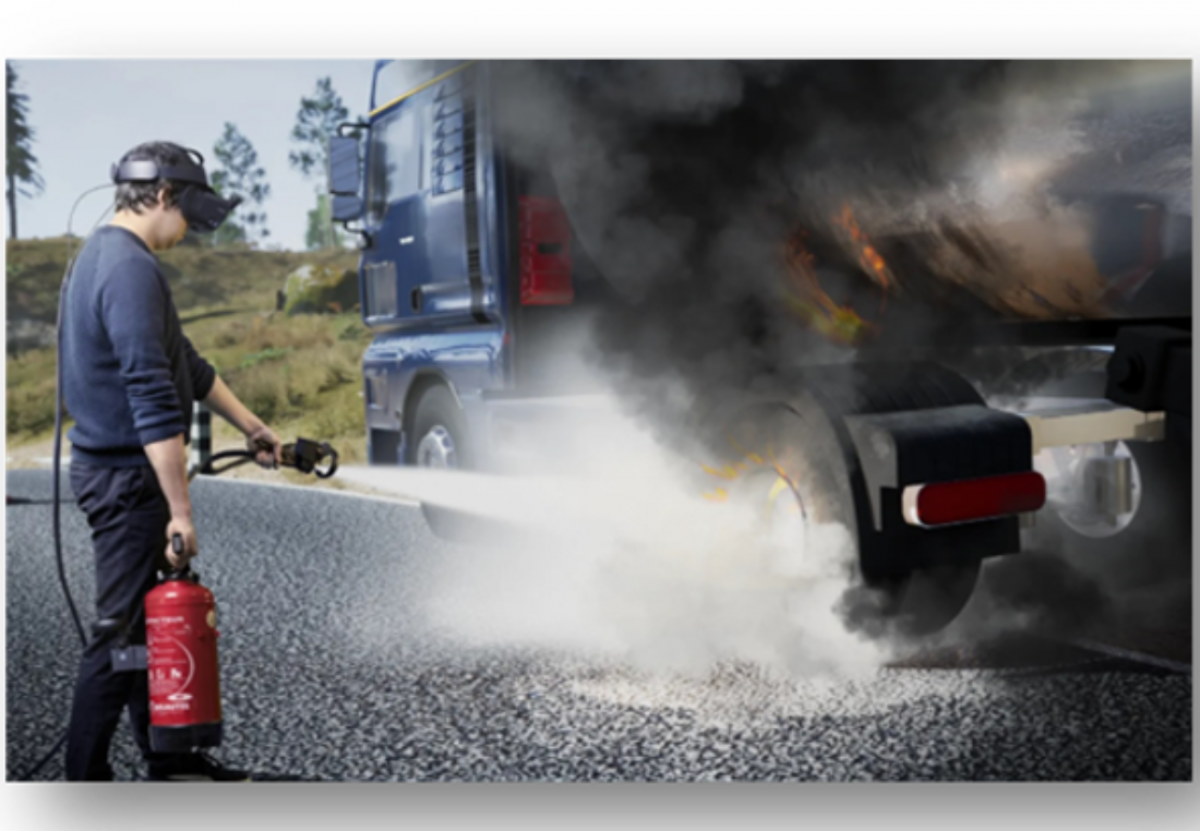 L’utilisation du simulateur incendie a attiré de nombreux visiteurs. Il s’agit d’un casque de réalité virtuelle dans lequel une simulation d’incendie est projetée et la personne doit l’éteindre avec un extincteur physique connecté, au plus près du risque et en totale sécurité. Plusieurs scénarios sont disponibles et personnalisables : Transport de marchandises dangereuses ou de voyageurs, incendie de bureau, incendie en entrepôt de stockage, incendie en magasin.